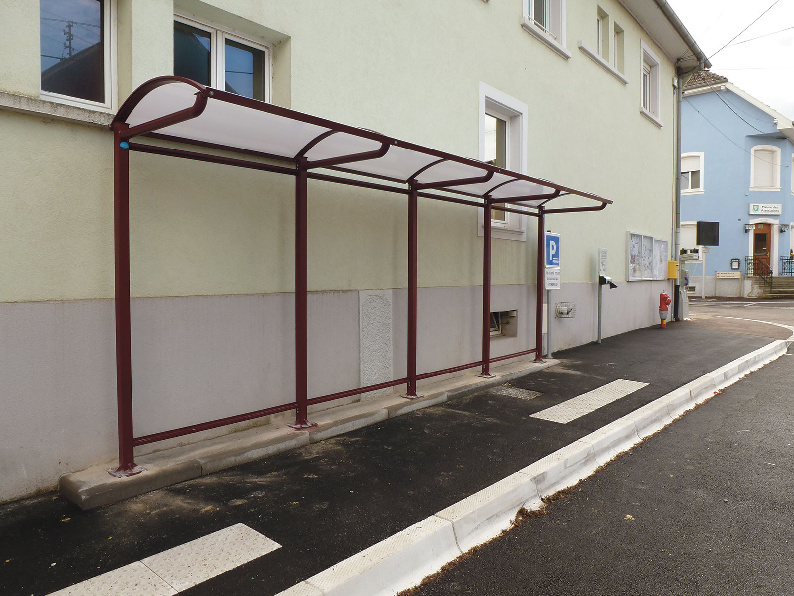 Voute en méthacrylate opale anti-UV pincé entre arceaux profil aluminium laqué.