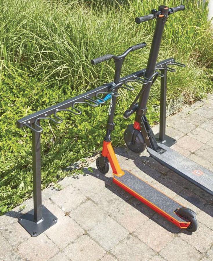 - La forme en V des supports mat de trottinettes permet un blocage efficace des trottinettes.