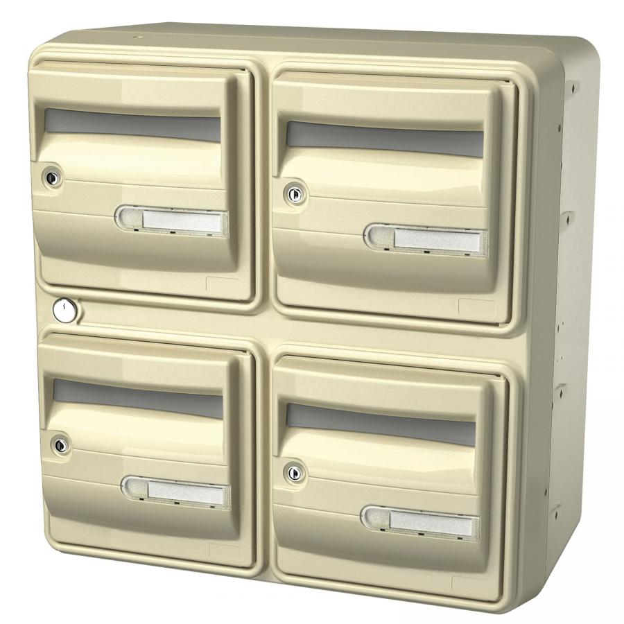 Boîte aux lettres réalisée en résine polyester armée de fibre de verre, revêtue d'une peinture polyuréthane cuite.