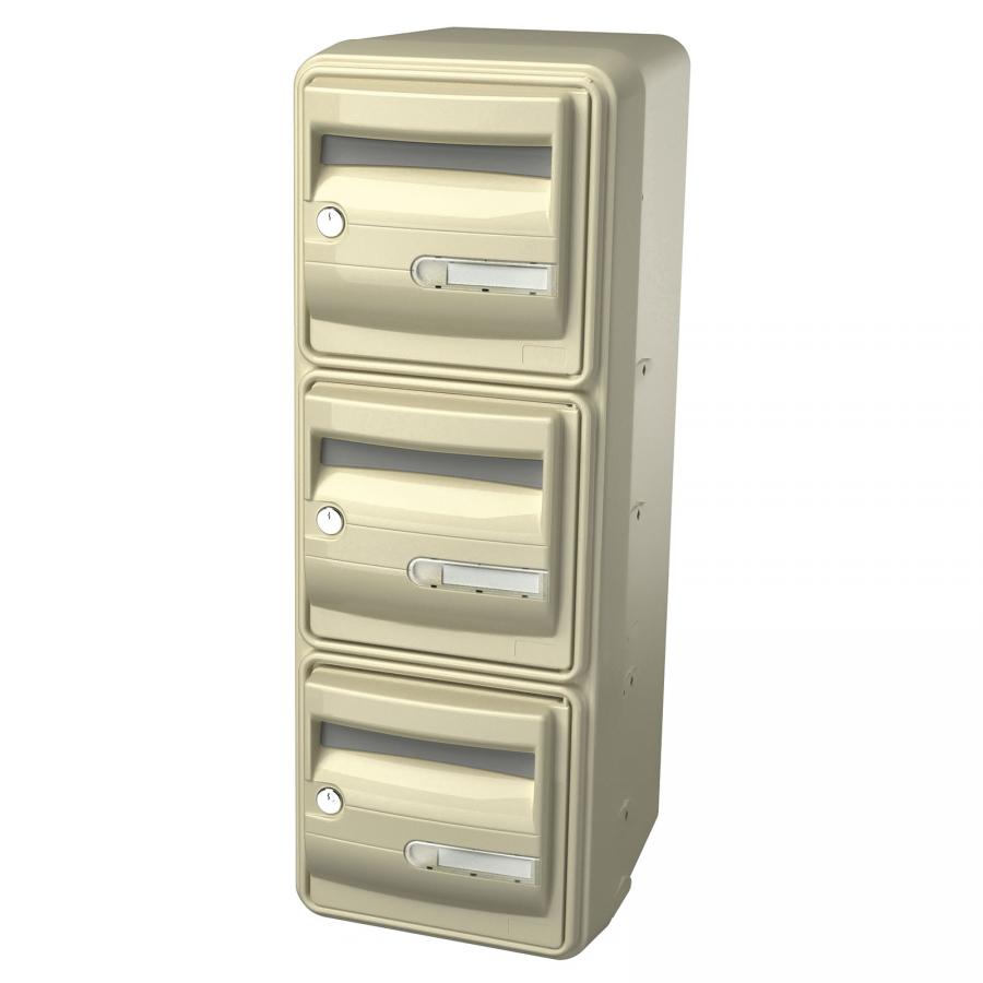 Boîte aux lettres réalisée en résine polyester armée de fibre de verre, revêtue d'une peinture polyuréthane cuite.