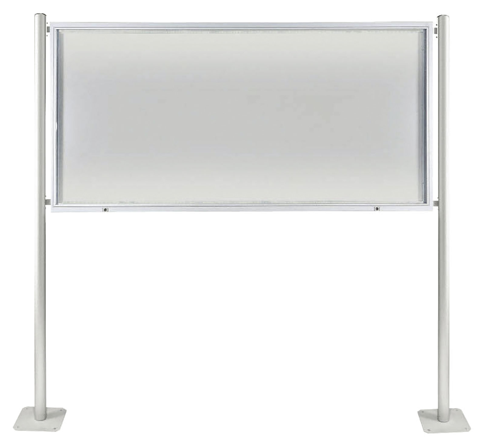 Vitrine d'extérieur simple face sur platine avec cadre en aluminium anodisé, 2 serrures.