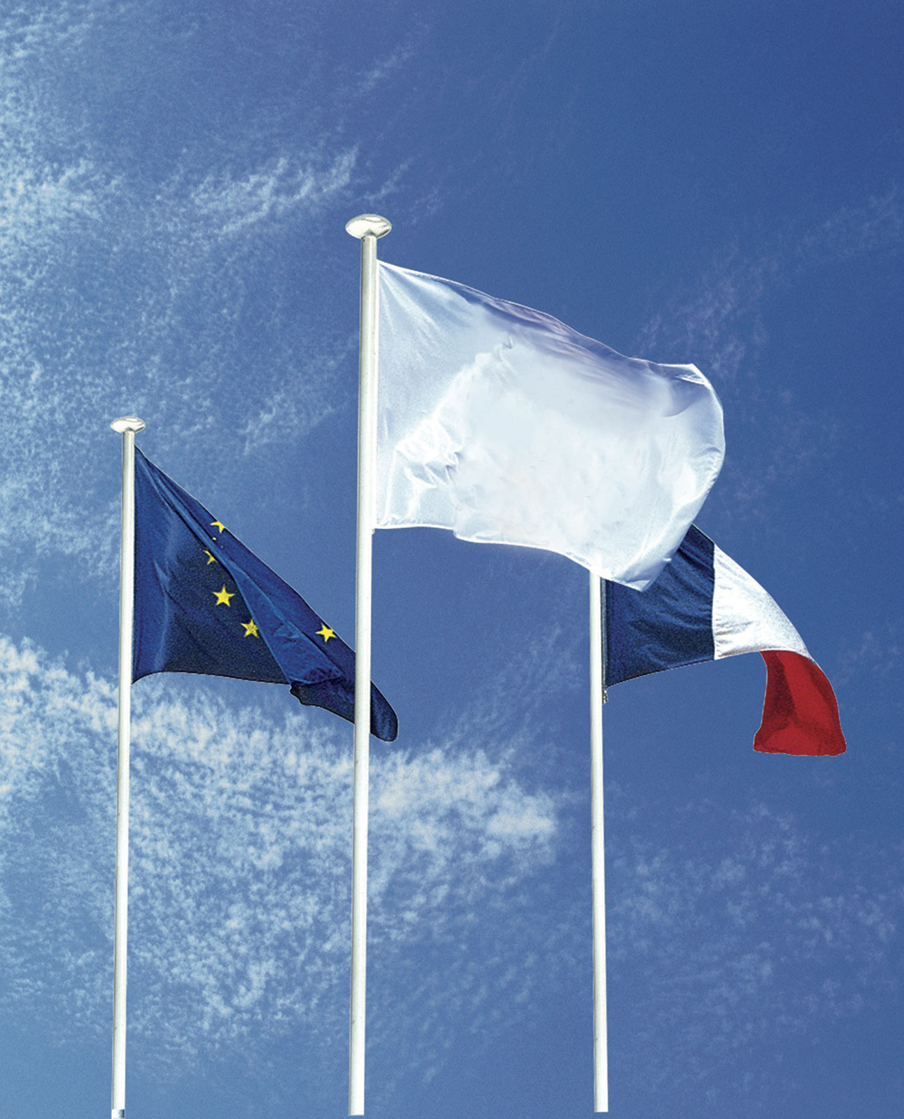 Mât en alu laqué blanc. 3 modèles au choix. Avec pommeau, drisse et taquet. Attention : perte d’environ 70 cm de hauteur utile dans le fourreau de scellement.