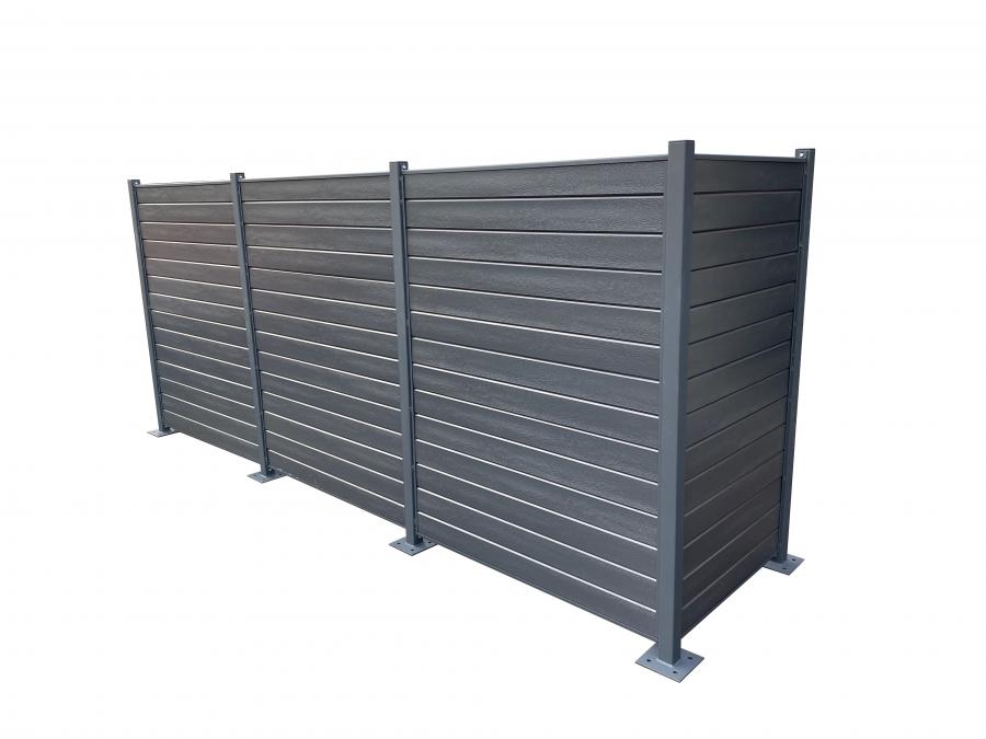 - Habillage lames composites 100 x 24 mm glissé dans un cadre en acier de 30x30x1,5 mm.