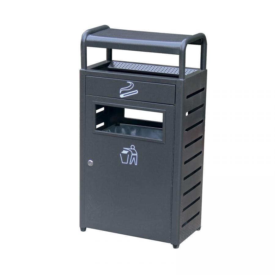 BORNE ACIER CORBEILLE 60L CENDRIER 12L - Equip Urbain