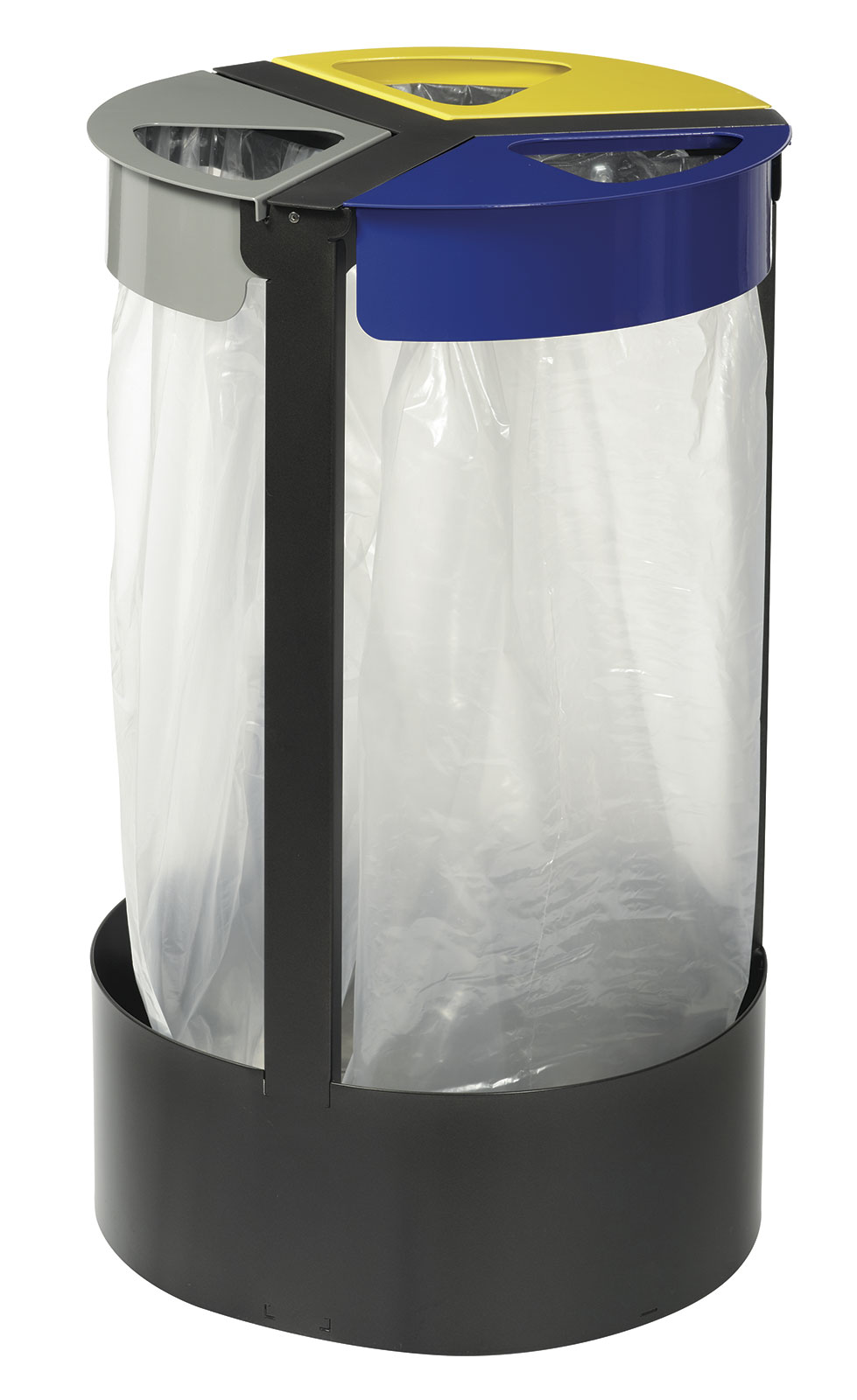 Support pour 3 sacs poubelles 75 litres avec ceinture élastique.